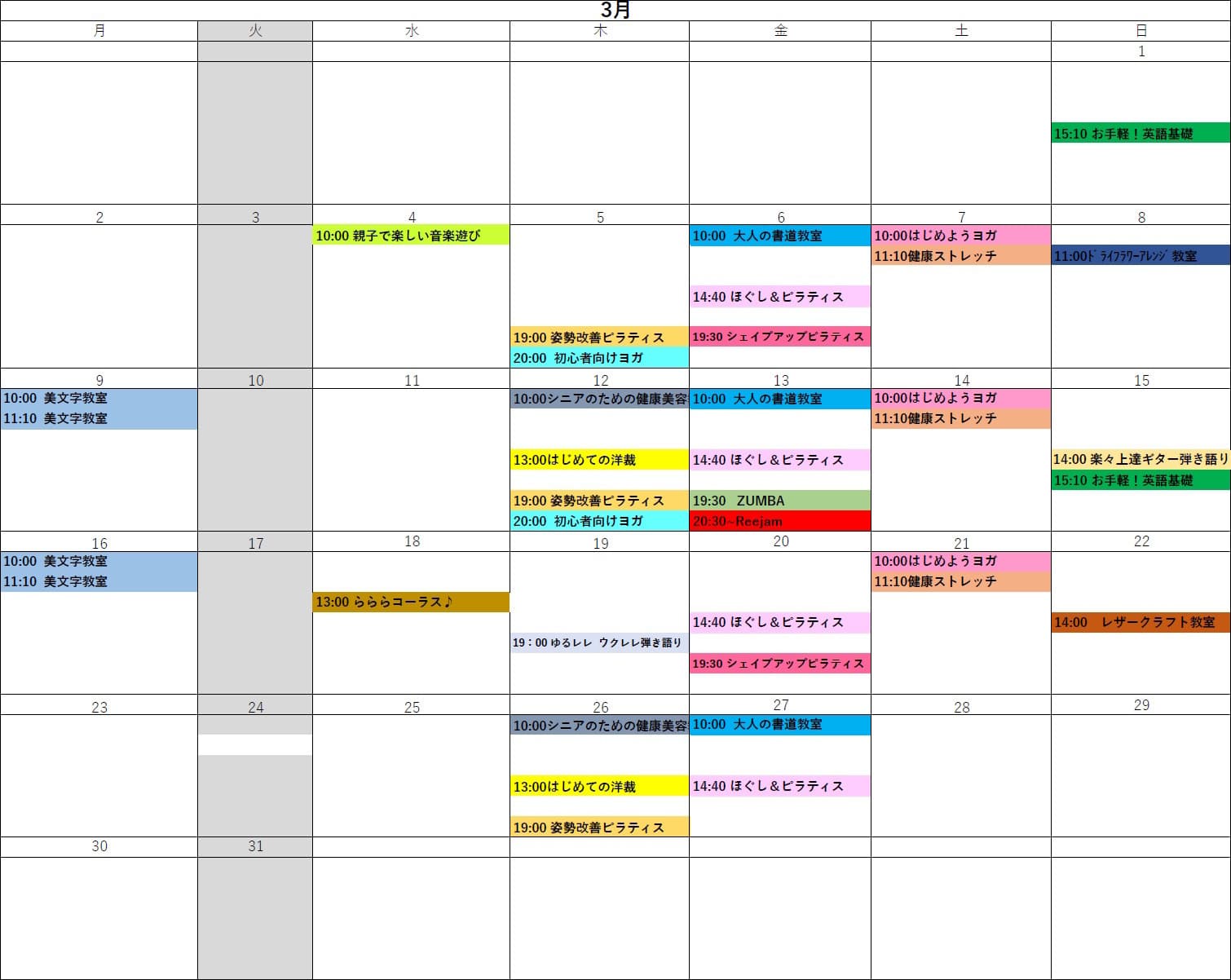 2026年3月講座スケジュール