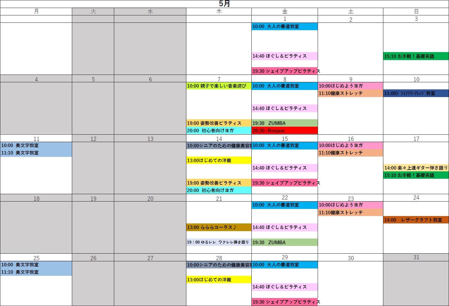 2026年5月講座スケジュール