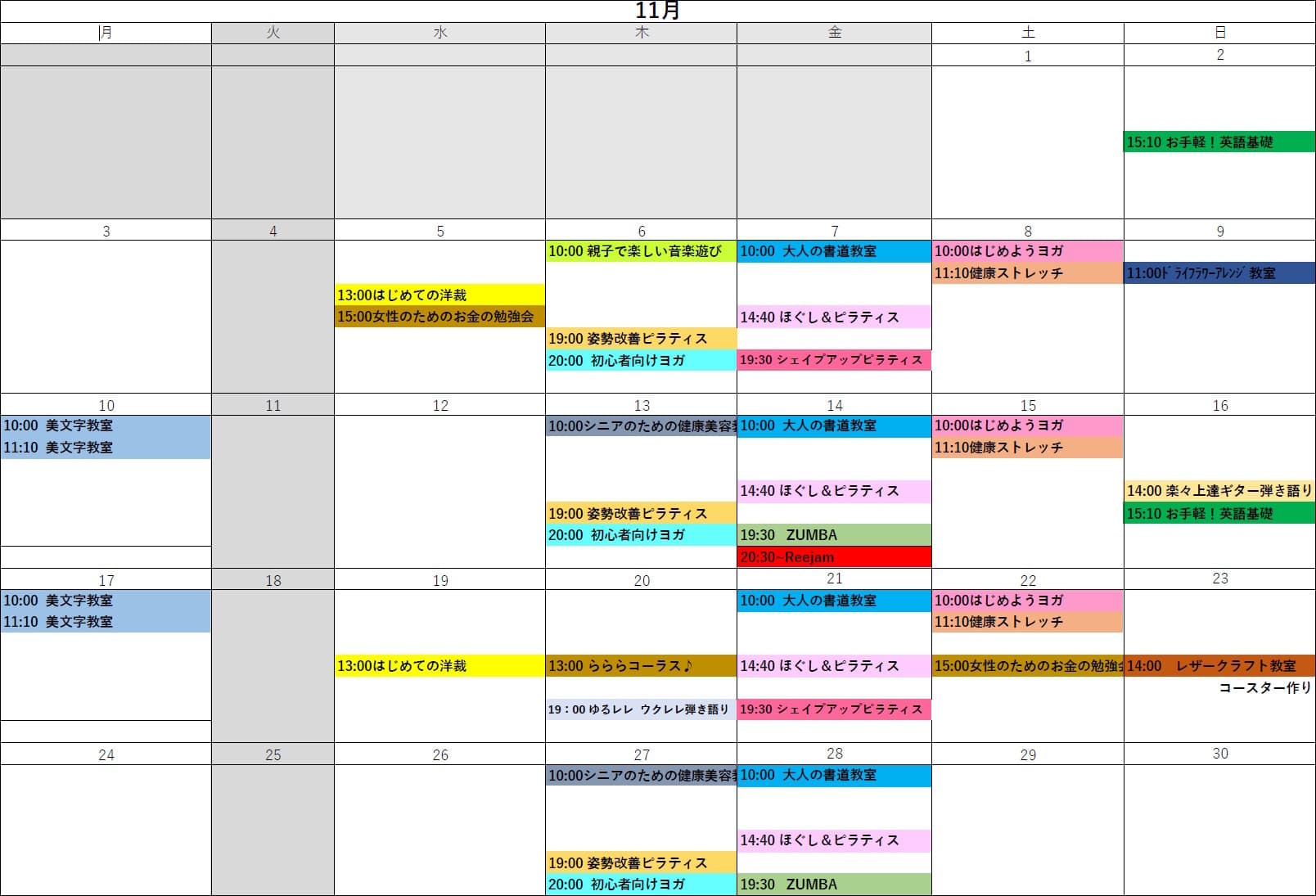 2025年11月講座スケジュール