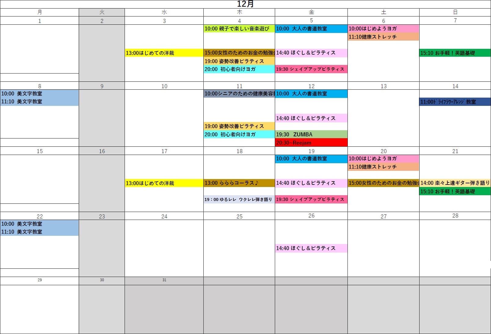 2025年12月講座スケジュール